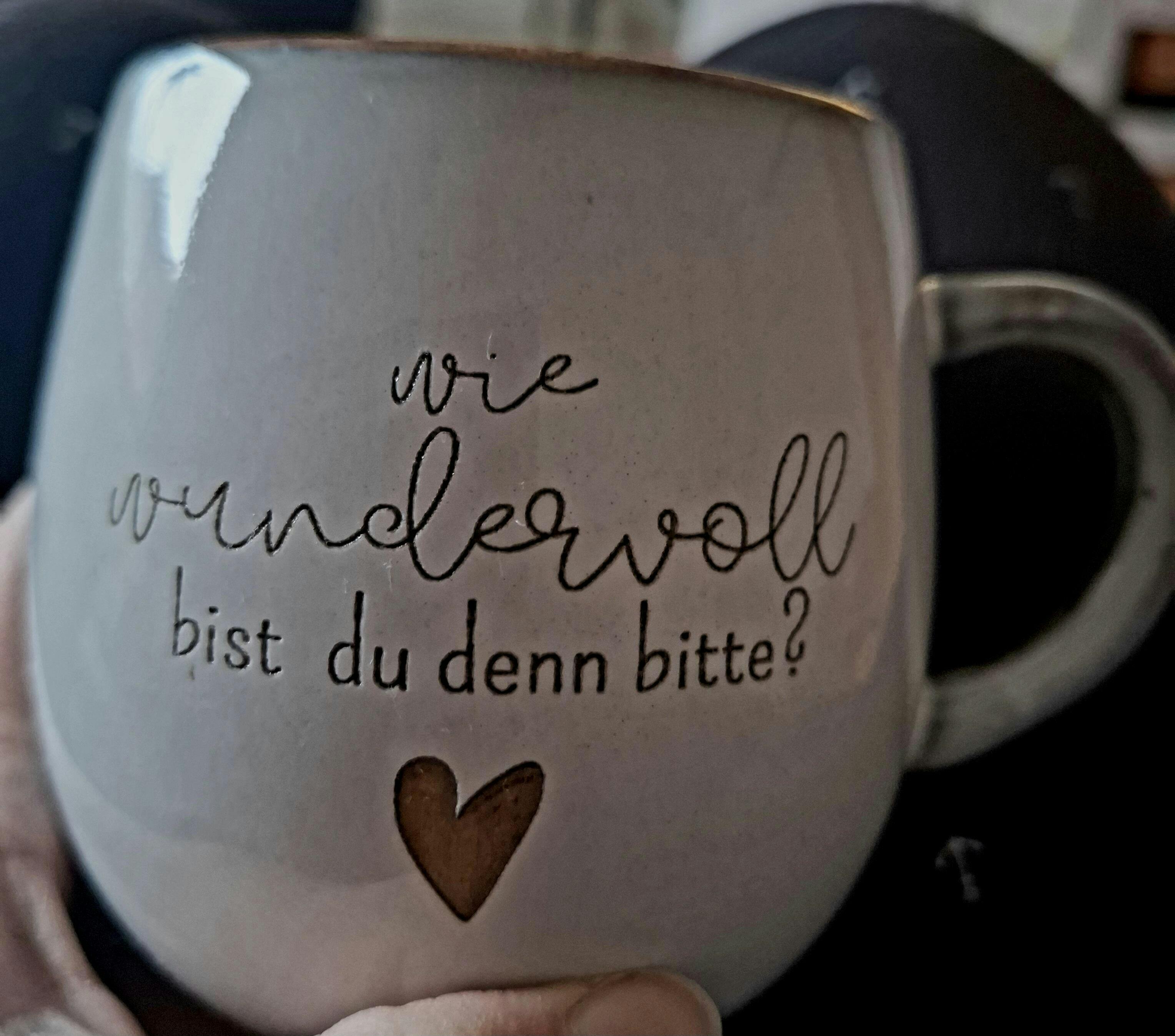 Keramiktasse „Wie wundervoll bist du denn bitte?“ – 400 ml pure Freude!