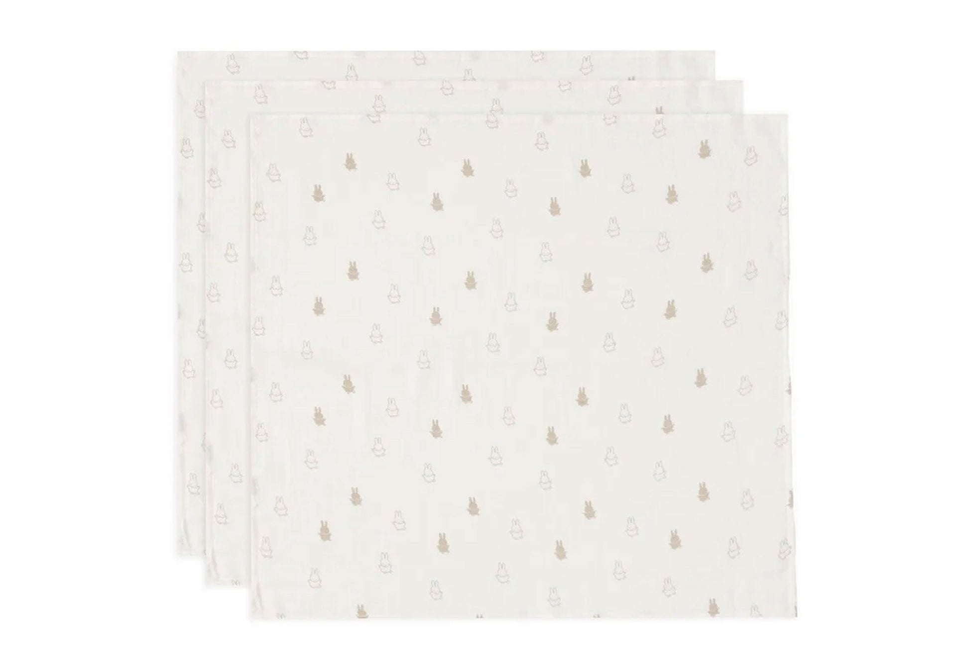 Mulltücher von Jollein im 3er Set: Diese wunderschönen Mulltücher haben einen süßen Miffy-Allover-Print. Mit einem Hintergrund in der Farbe Ivory und Miffy in Nougat sind sie nicht nur optisch ansprechend, sondern auch besonders weich und schonend für empfindliche Babyhaut.