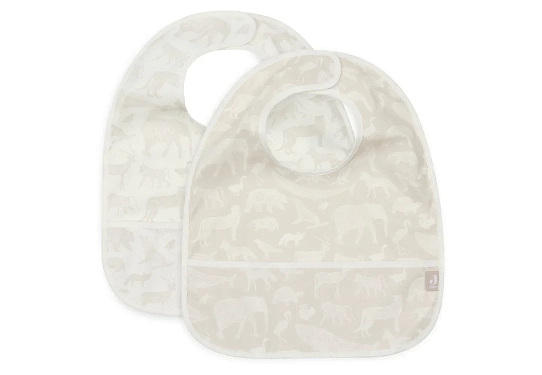 Wasserdichte Lätzchen von Jollein: Diese Lätzchen sind die perfekte Lösung für unvorhersehbare Essenszeiten. Sie bieten zuverlässigen Schutz vor den wildesten Missgeschicken und sind dank des weichen Klettverschlusses einfach anzubringen und zu entfernen. Im praktischen 2er Set erhältlich, versehen mit einem süßen Animals Print.